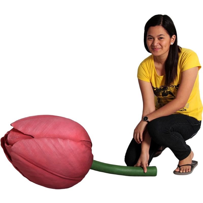 60cm×39cmのピンク色のチューリップです。ピンク色のチューリップの花言葉は「愛の芽生え」です。