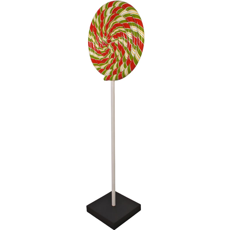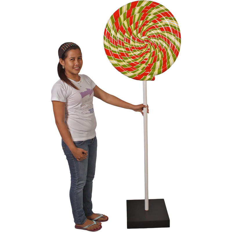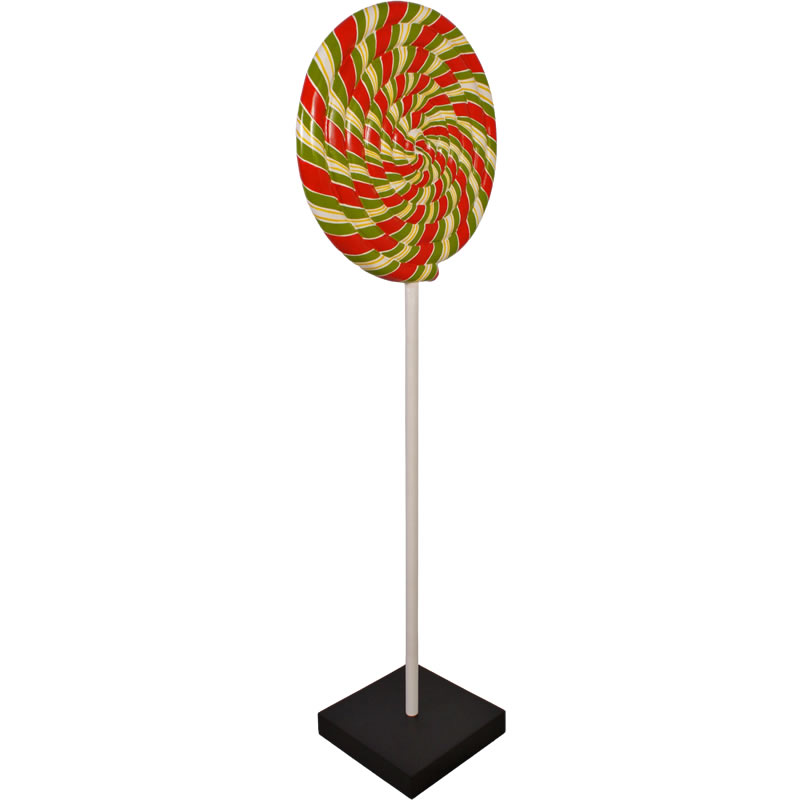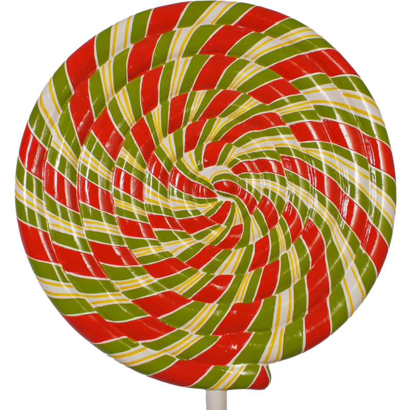 赤・白・緑の飴が渦を巻いているペロペロキャンディ。お菓子の代表格であるキャンディが特大サイズのオブジェとなって登場。